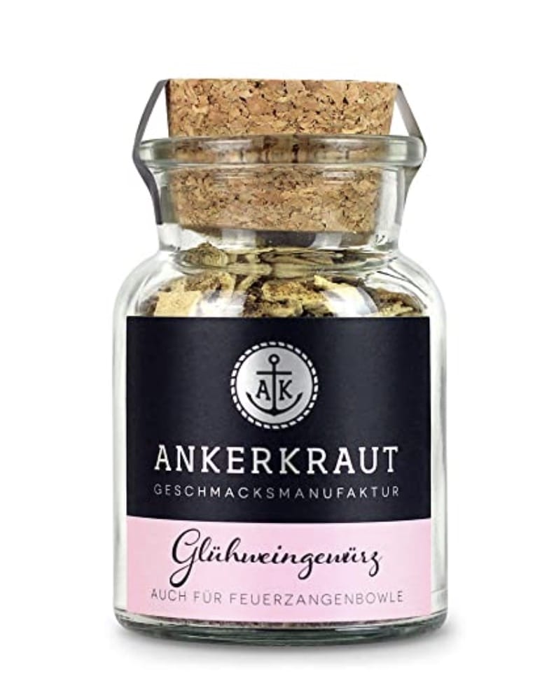 Das Ankerkraut Glühweingewürz. Eine Gewürzmischung für Glühwein, Feuerzangenbowle, Punsch, Kinderpunsch und Weihnachtstee, im 60g Korkenglas.