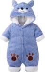 Der Baby Overall Winter Flanell Pyjama bietet angenehme Wärme und ein sanftes Tragegefühl für Babys von 0 bis 24 Monaten. Das weiche Fleece-Material hält zuverlässig warm, während die Knopfleiste das An- und Ausziehen erleichtert. Mit den niedlichen Bärenohren auf der Kapuze erhält der Strampler einen kindgerechten Look. Ideal als Schlafanzug, Schneeanzug oder für gemütliche Stunden zu Hause – perfekt für die Wintermonate.