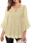 Die Damen Bluse mit Rüschenärmel bietet eine elegante Lösung für Business und Freizeit. Der fließende Stoff sorgt für eine angenehme Passform, während die detailreichen Rüschenärmel dem Look eine besondere Note verleihen. Das Design überzeugt durch klare Linien und dezente Akzente, die sich leicht mit Jeans, Stoffhosen oder Röcken kombinieren lassen. Ideal für Tage, an denen Du Wert auf ein gepflegtes und zugleich modisches Erscheinungsbild legst.