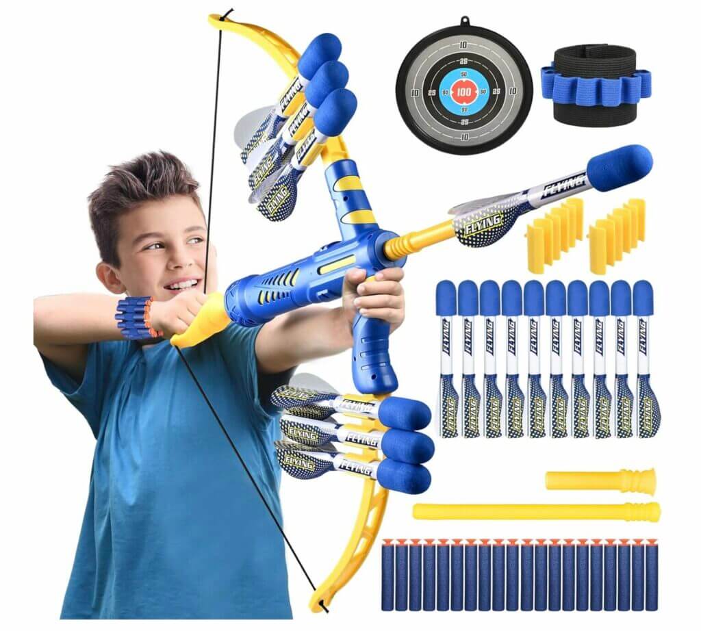 Das Doloowee Bogen und Pfeilset für Kinder enthält einen Bogen, 10 Schaumstoffpfeile, 20 Kugeln, eine Zielscheibe, zwei Pfeilclips, die am Bogen befestigt und auf Schaumstoffpfeile, sowie zwei Umrüstrohre für Pfeile, die mit einem gelben langen Rohr mit Schaumstoffpfeil verwendet werden können. Eine tolle Geschenkidee für Jungen und Mädchen.