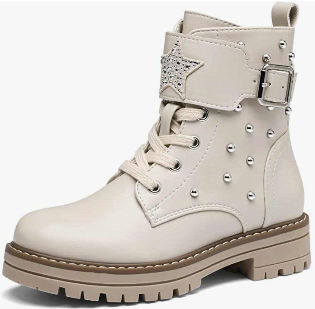 Die DREAM PAIRS Schnürstiefel mit Schnalle und tollen Nietenelementen. Die Fleecegefütterten Stiefel sind ideal für kältere Tage geeignet.