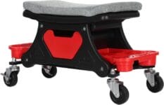 Der Fogmiea Werkstatthocker bietet dir eine stabile und komfortable Sitzgelegenheit für präzise Arbeiten in der Werkstatt oder Garage. Mit einer Tragkraft von bis zu 185 kg und einer weichen Schaumstoffpolsterung ermöglicht er bequemes Arbeiten über längere Zeit. Vier um 360 Grad drehbare Rollen – zwei davon mit Bremsen – sorgen für hohe Mobilität und sicheren Stand. Unter der Sitzfläche befinden sich Ablagen für Werkzeuge und Zubehör.