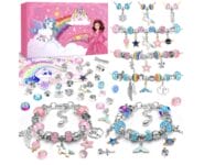können Kinder ab 6 Jahren ihre eigenen Armbänder gestalten und ihrer Kreativität freien Lauf lassen. Das Set enthält eine Vielzahl an bunten Perlen, Einhorn-Anhängern und elastischen Bändern, mit denen sich kinderleicht individuelle Schmuckstücke kreieren lassen.