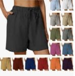 Diese kurze Damen Hose ist ideal für die warme Jahreszeit und bietet Dir ein angenehmes Tragegefühl dank der leichten und atmungsaktiven Materialien aus Baumwolle und Leinen. Die weiten Beine dieser Sommerhose sorgen nicht nur für eine lässige Optik, sondern ermöglichen auch maximale Bewegungsfreiheit, egal ob Du am Strand entspannst oder durch die Stadt schlenderst.