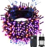 mit 300 LEDs in Lila und Orange sorgt für eine eindrucksvolle Beleuchtung im Innen- und Außenbereich. Mit sieben Leuchtmodi und integriertem Horrorsound entsteht eine stimmungsvolle Dekoration für Garten, Haus oder Party. Die 35 Meter lange, wasserdichte Kette lässt sich flexibel anbringen und eignet sich ideal für Halloweenfeiern oder herbstliche Akzente. Ein Netzstecker sorgt für zuverlässige Stromversorgung.