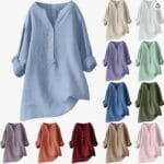 Hergestellt aus hochwertigem Leinen und Baumwolle, bietet sie dir Komfort und Atmungsaktivität für den ganzen Tag. Der V-Ausschnitt verleiht dir einen ansprechenden Look, während die Knöpfe das Design ergänzen. Diese Hemdbluse ist in einer Vielzahl von Farben erhältlich und eignet sich perfekt für den täglichen Gebrauch oder besondere Anlässe. Mit ihrem Oversize-Schnitt und den großen Größen bietet sie eine bequeme Passform für Frauen jeder Figur.