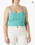 Mit seiner hochgeschlossenen Kragenform und den schmalen Trägern verleiht dir dieses Top einen eleganten und zugleich lässigen Look. Der Pull-On-Verschluss macht das An- und Ausziehen besonders einfach und bequem. Die Knöpfe vorne setzen modische Akzente und machen das Top zu einem echten Hingucker.