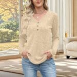 Der Pullover mit V-Ausschnitt für Damen bietet eine leichte, wärmende Strickqualität, die ideal für kühle Tage ist. Das gerippte Material sorgt für eine ansprechende Struktur, während die Knopfleiste am Ausschnitt dezente Akzente setzt. Durch den lockeren Schnitt trägt sich der Sweater angenehm und lässt sich vielseitig kombinieren – ob zu Jeans, Rock oder unter einer Jacke im Herbst und Winter. Ein einfarbiger Basic-Pulli für vielseitige Alltagslooks.