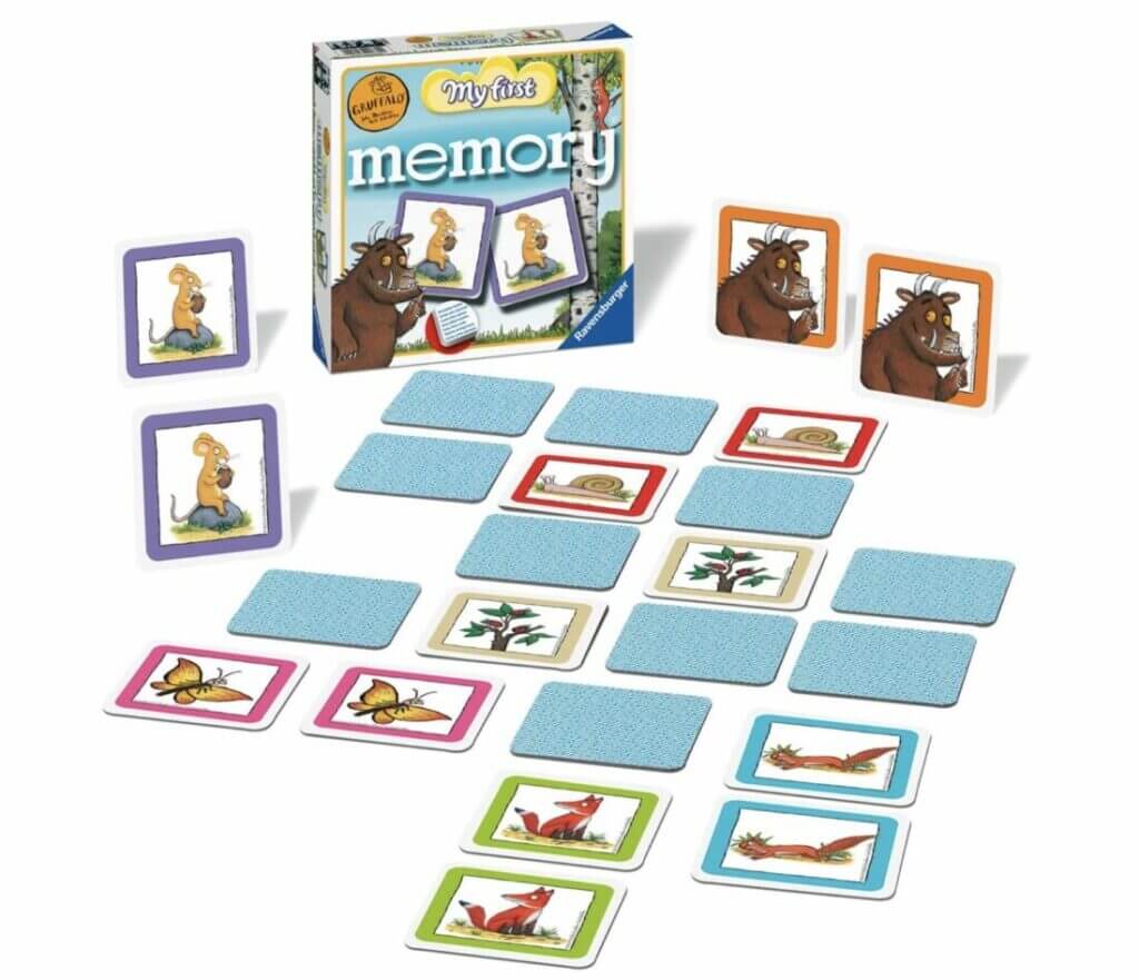 Das Ravensburger Kinderspiel Der Grüffelo My First memory®. Ein Gedächtnisspiel für 2-4 Grüffelo-Fans ab 2 Jahren. Die genial einfachen Spielregeln machen es zum perfekten Familienspiel, bei dem die Kleinen oftmals gegen die Großen gewinnen.