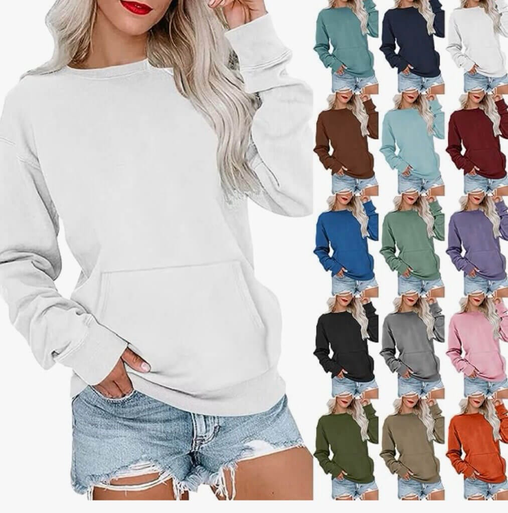 Sichere Dir einen stilsicheren und bequemen Look mit dem Langarm Rundhals Sweatshirt für Damen. Dieser Pullover bringt Schwung in Deine Garderobe und setzt modische Akzente in Deinem Alltagsoutfit.