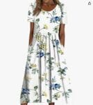 Das Kleid für Damen ist lang, leicht und luftig, perfekt für warme Tage und Strandaktivitäten. Das kurze Ärmelkleid mit V-Ausschnitt und A-Linie bietet einen bequemen und lockeren Schnitt. Es hat ein hübsches Blumenmuster und reicht bis zur Wade. Die praktischen Taschen verleihen dem Maxikleid zusätzlichen Komfort und Stil. Ein idealer Begleiter für entspannte Sommertage.