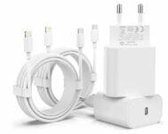 Das 20W USB C Ladegerät im 4er Pack ist eine praktische Lösung für deine Ladebedürfnisse. Es enthält zwei 20W USB C Netzteile mit PD 3.0 Technologie für schnelleres Aufladen und zwei iPhone Ladekabel mit einer Länge von 2 Meter. Sie garantieren eine hohe Kompatibilität mit allen Apple Geräten, einschließlich iPhone 14 Pro Max, 13, 12, 11, XS Max, iPad usw.