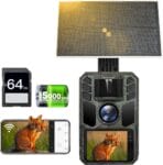 mit Handyübertragung bietet Dir eine langfristige Stromversorgung durch integrierten 5000-mAh-Akku und Solarpanel, kombiniert mit 64MP Fotos, 4K-Video und schneller 0,1-s Auslösung. Du steuerst Einstellungen per App, überträgst Aufnahmen direkt aufs Smartphone und deckst durch 130° Weitwinkel große Bereiche ab. Die Nachtsicht mit Niedriglicht-LEDs ermöglicht klare Bilder ohne Tiere zu stören, während das IP67-Gehäuse auch bei anspruchsvollen Außenbedingungen zuverlässig bleibt.