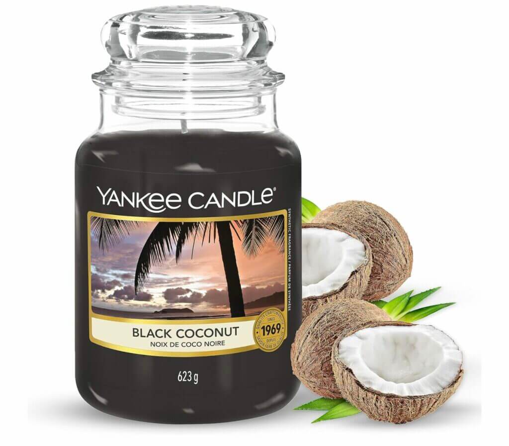 Die Yankee Candle Duftkerze im Glas in Black Coconut duftet intensiv nach Kokos, Sandelholz und Inselblüten für wunderbare Abende mit viel Ruhe. Die Brenndauer der Kerze beträgt bis zu 150 Stunden.