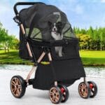 bietet deinem kleinen Hund eine bequeme Möglichkeit, dich überallhin zu begleiten. Mit dem umkehrbaren Griff, den Netzfenstern und den 360° drehbaren EVA-Rädern mit Bremsen hast du alles unter Kontrolle. Der Haustierbuggy punktet zudem mit praktischem Getränkehalter.